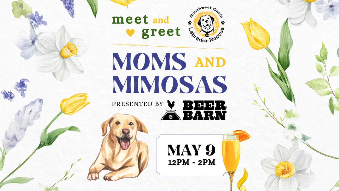 Join us for Mother’s Day Weekend, on Saturday, May 9th, we’ll be hosting a lovely event with our friends from Southwest Oasis Labrador Rescue! They’ll be bringing some adorable labs who are looking for their new home! SOLR will be with us from 12pm - 2pm, so come on by and sip on some mimosas and rescue a new furry friend (or come say hi, the pups love meeting new faces!)
